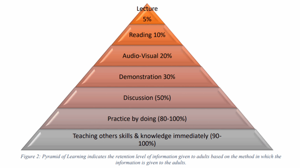 to ensure sustained interest and effective communication to the Trainees. As an important pointer, the Trainer needs to be aware of the pyramid of learning.